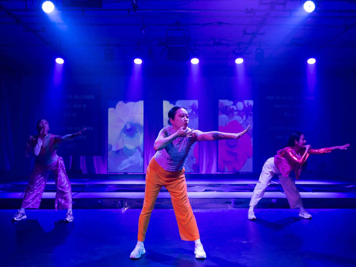 Und so wird bei der Inszenierung auf dem Radikal jung Festival das ganze Volkstheater zur Bühne. Das Stück beginnt auf Bühne 3, endet aber nicht dort. Nach einer kurzen Einführung durch die drei Tänzerinnen und Performerinnen Hyemi Jolee, Ji Sun Hagen und Jung Sun Kim mit einem traditionellen, koreanischen Tanz, trennt sich das Publikum in drei verschiedene Gruppen. Aufgeteilt werden diese anhand eines digitalen Quiz mit teils abstrusen Fragen rund um Nordkorea: "Wenn du dich für eine dieser Frisuren entscheiden müsstest – welche würdest du nehmen?" Währenddessen schlüpft die Regisseurin des Stückes selbst in die Rolle der Moderatorin der sogenannten "Blind-Dates" und überspielt alle technischen und organisatorischen Probleme mit einem Lächeln als Teil der Show.