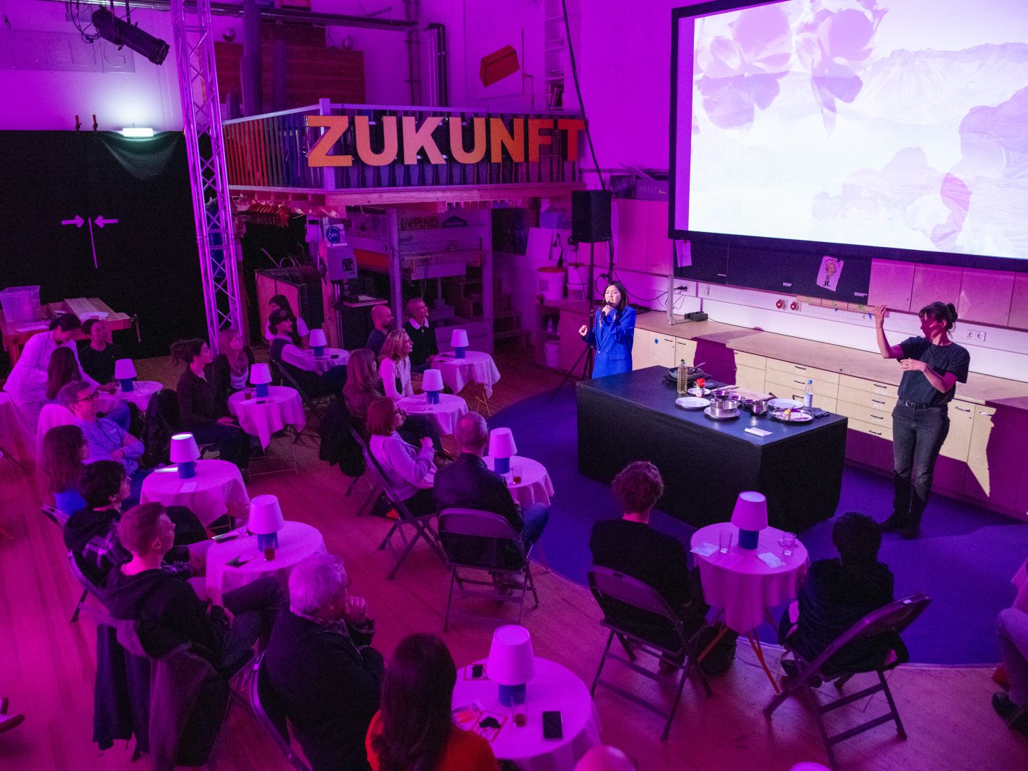 Es ist ein wenig schade, dass jede*r bloß ein Drittel des Stückes erlebt. Als das Publikum zum gemeinsamen Abschluss in der Schreinerei zusammenkommt, wo es nach gebratenem Knoblauch duftet, erfährt man nur durch Erzählungen der anderen Gruppen von den anderen beiden Performances. Von individuellen Blicken in die Zukunft und Kartenlegen dabei ist die Rede, und von einem Live-Kochen, das zu einem Großteil aus Chilis besteht.