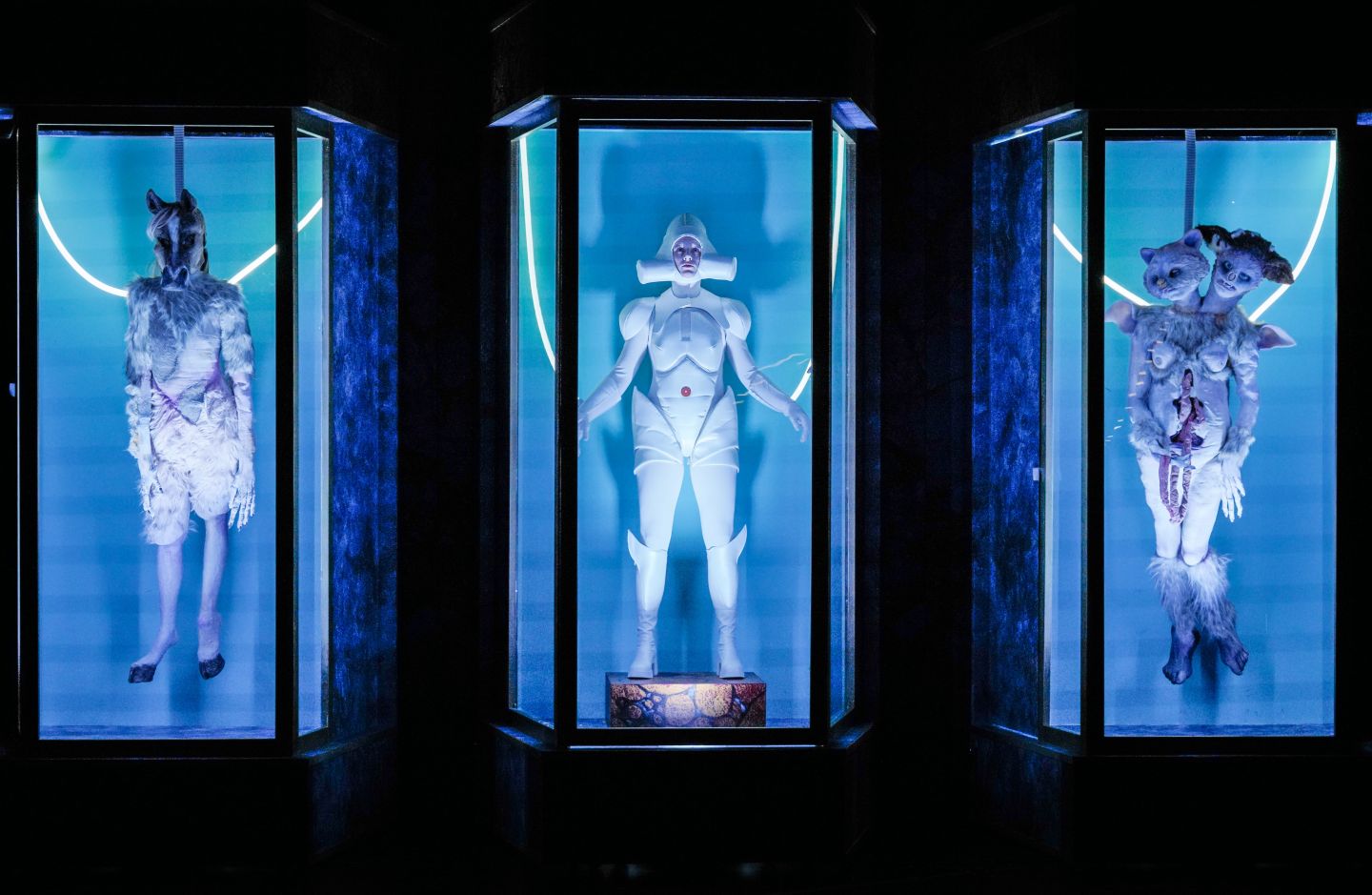 Van Looferen zeigt das Video auf gebogenen Wänden, passend zum Gender-bending, nichts soll "straight" bleiben. Während die Körper im Video mit sicherem Abstand und durch die Kamera in Erscheinung treten, begegnen wir ihnen in der Performance direkt – Eye to Eye, von Angesicht zu Angesicht.